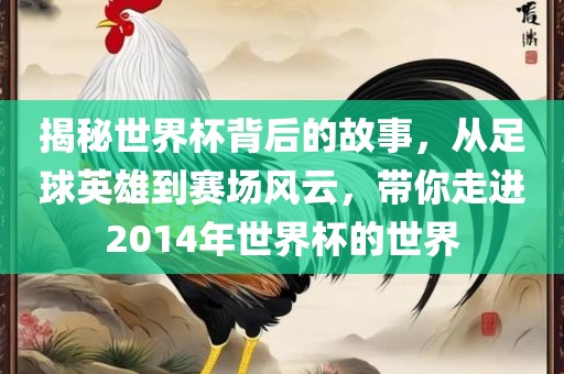摘要:本文将带你走进2014年世界杯的世界,揭示背后不为人知的故事。从足球英雄到赛场风云,感受赛场上的激情与荣耀。一起领略世界杯的魅力,体验足球带来的激情与热血。跟随本文,你将深入了解世界杯背后的故事,感受足球的力量和荣耀。