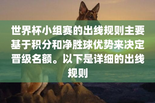 世界杯小组赛的出线规则主要基于积分和净胜球优势来决定晋级名额。以下是详细的出线规则