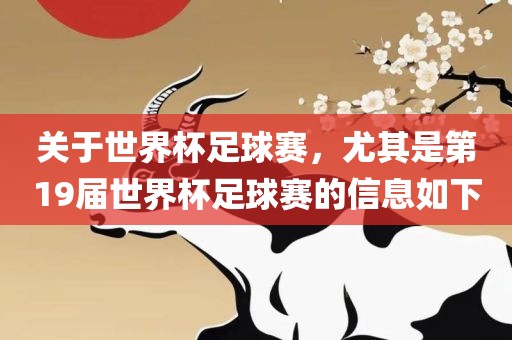 关于世界杯足球赛,尤其是第19届世界杯足球赛的信息如下