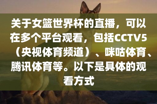 关于女篮世界杯的直播,可以在多个平台观看,包括CCTV5(央视体育频道)、咪咕体育、腾讯体育等。以下是具体的观看方式
