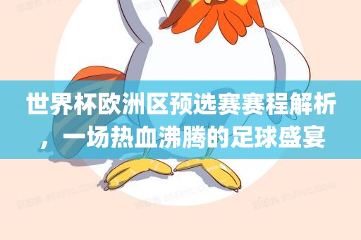 世界杯欧洲区预选赛是一场热血沸腾的足球盛宴,吸引了无数球迷的关注,本文为您介绍了赛事概述、赛程安排、热门球队及球员、比赛看点与预测、球迷观赛指南以及赛事影响与意义等方面的内容,希望本文能帮助您更好地了解这场盛大的足球赛事,让我们一起期待这场足球盛宴的到来!