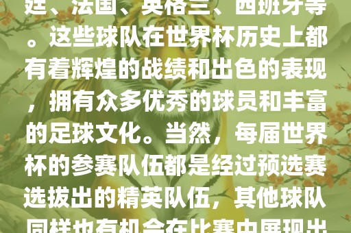 仅供参考,如需了解更多关于世界杯强队的信息,建议查看最新的新闻报道或相关足球分析文章。