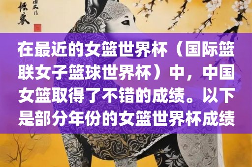在最近的女篮世界杯(国际篮联女子篮球世界杯)中,中国女篮取得了不错的成绩。以下是部分年份的女篮世界杯成绩