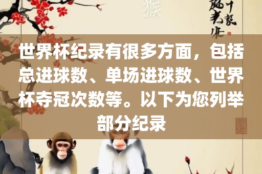 世界杯纪录有很多方面,包括总进球数、单场进球数、世界杯夺冠次数等。以下为您列举部分纪录
