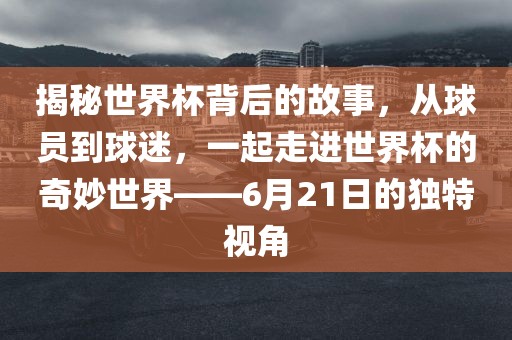 摘要:本文带你走进世界杯背后的故事,从球员到球迷,共同探寻这一全球盛事的奇妙世界。6月21日的独特视角,揭示世界杯的种种精彩与感动。跟随我们的脚步,一起感受足球的魅力,体验这场充满激情与梦想的盛宴。