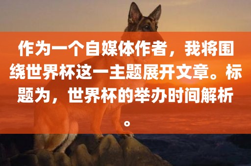 作为一个自媒体作者,我将围绕世界杯这一主题展开文章。标题为,世界杯的举办时间解析。