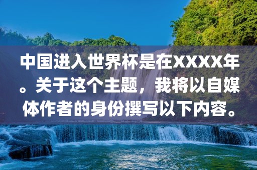 中国进入世界杯是在XXXX年。关于这个主题,我将以自媒体作者的身份撰写以下内容。
