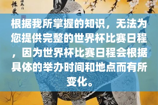 建议您通过官方渠道或相关新闻获取最新的世界杯比赛日程,您可以关注国际足联(FIFA)的官方网站、社交媒体账号或相关体育新闻网站,以获取最准确和最新的世界杯比赛日程信息。