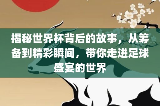 本文带你走进世界杯背后的故事,从筹备到精彩瞬间的全过程。文章将揭示足球盛宴的世界,带你了解世界杯的筹备工作、比赛精彩瞬间以及足球文化等方面的内容。阅读本文,将让你更加深入地了解世界杯的魅力,感受足球盛宴的精彩纷呈。