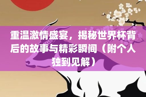 转载请注明来自眉山市正发家政服务有限公司,本文标题:《重温激情盛宴,揭秘世界杯背后的故事与精彩瞬间(附个人独到见解)》