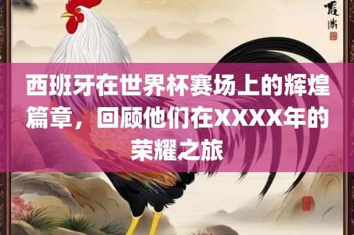 XXXX年的世界杯赛场,全球的目光聚焦于足球的热血与荣耀,在这场足球盛宴中,西班牙队以其出色的表现,赢得了全球球迷的瞩目和尊敬,我们将回顾这支队伍在世界杯赛场上的辉煌篇章,特别是他们在XXXX年的荣耀之旅。