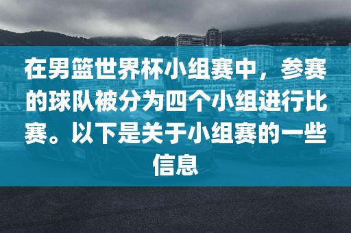 在男篮世界杯小组赛中,参赛的球队被分为四个小组进行比赛。以下是关于小组赛的一些信息